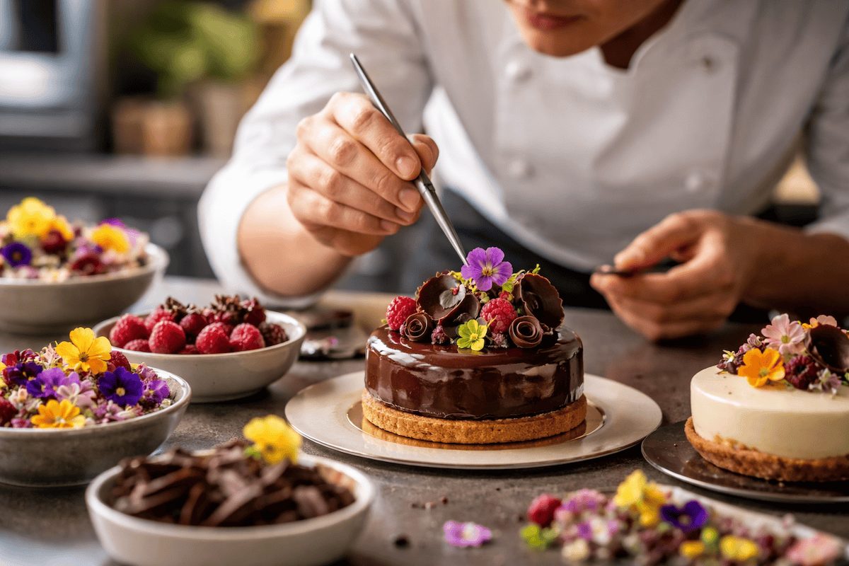 Pour les desserts et les pièces de pâtisserie, les décors alimentaires personnalisés permettent d’aller encore plus loin. Copeaux de chocolat, feuilles d’or, motifs imprimés sur du sucre ou encore décors en pâte d’amande : ces éléments apportent une signature visuelle unique à chaque réalisation sans nécessiter des heures de travail supplémentaire.